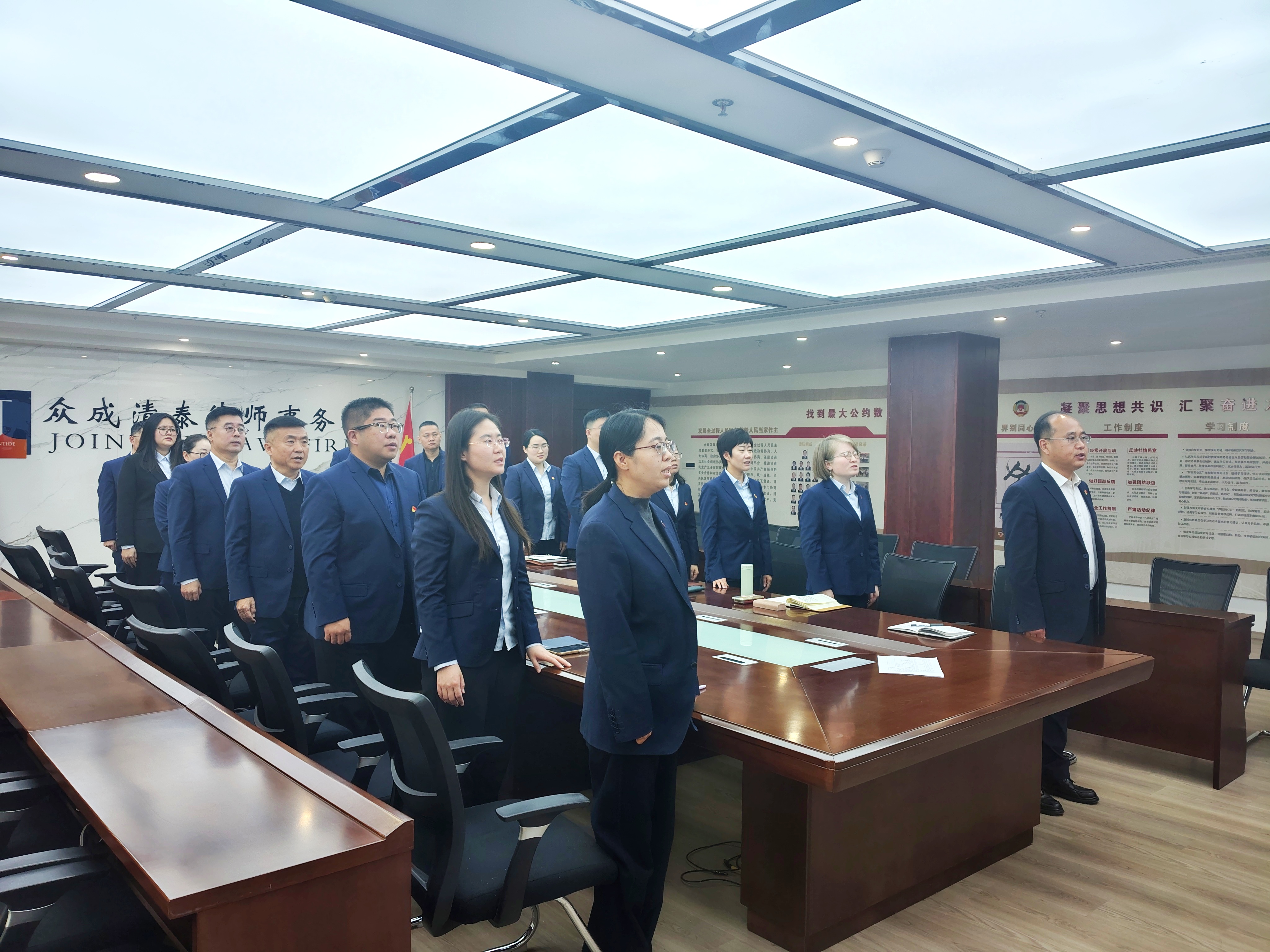 会议伊始,全体党员起立,庄严奏唱国歌。随后,全体党员在党旗下重温了入党誓词。